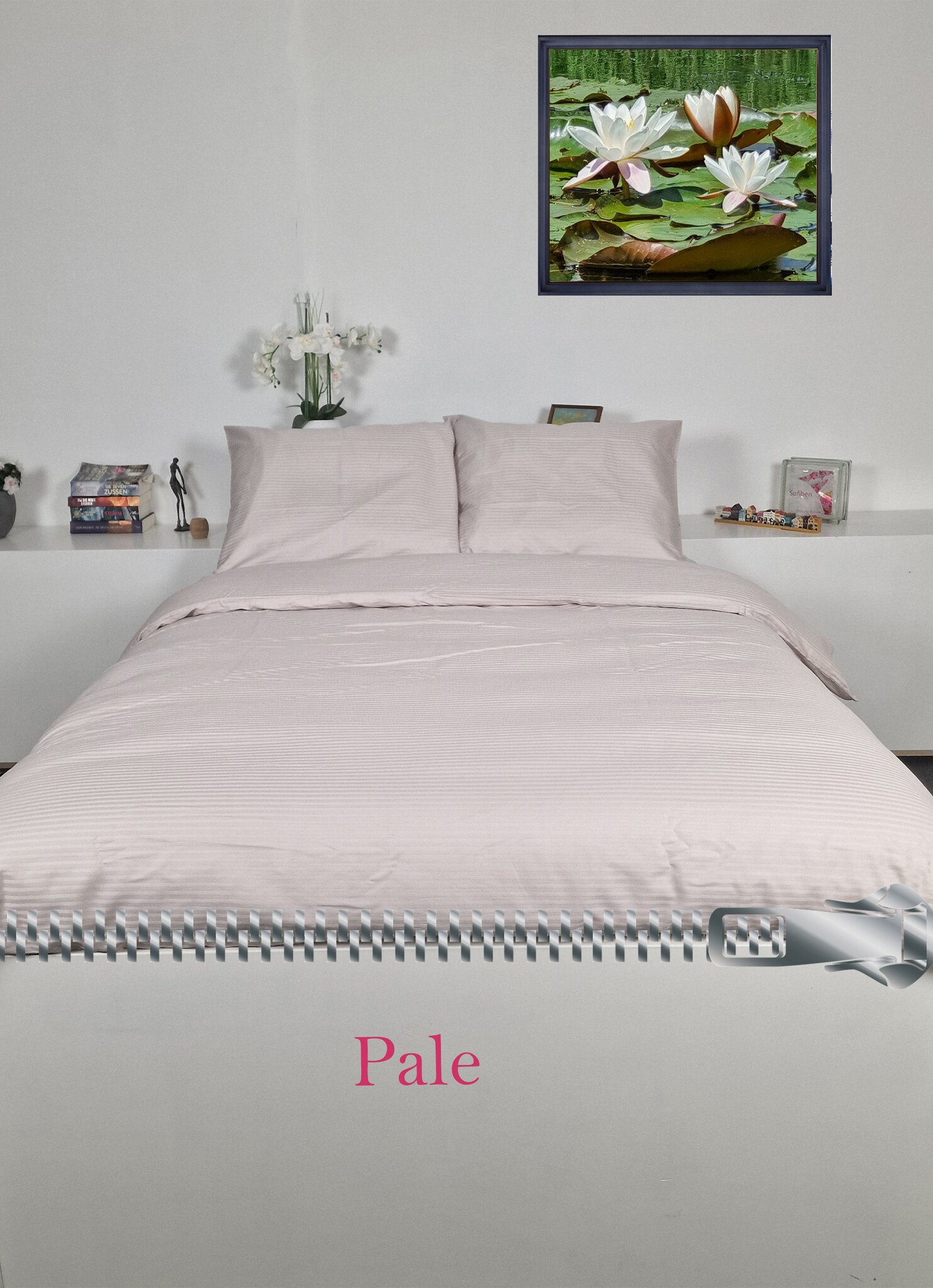 Dit prachtige dekbedovertrek is gemaakt van 300 TC katoensatijn, behandeld met Sanfor (voorkrimp) en heeft een ingeweven horizontale dunne streep, Men noemt deze stof ook wel hotellinnen.
