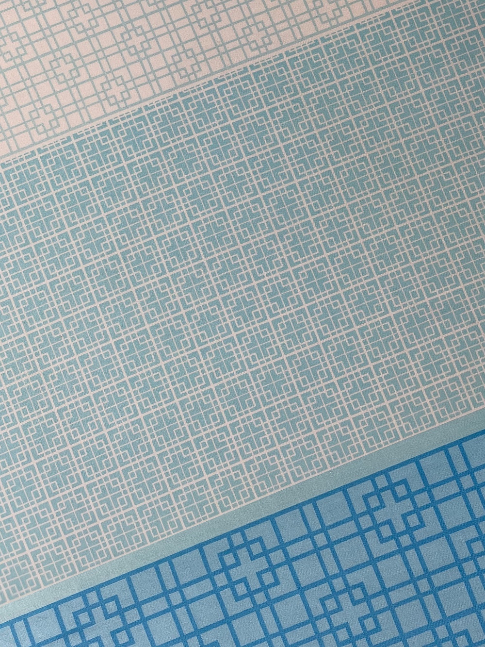 De onderzijde van het dekbedovertrek is uitgevoerd in heel lichtblauw met daarop witte blokjes en streepjes.