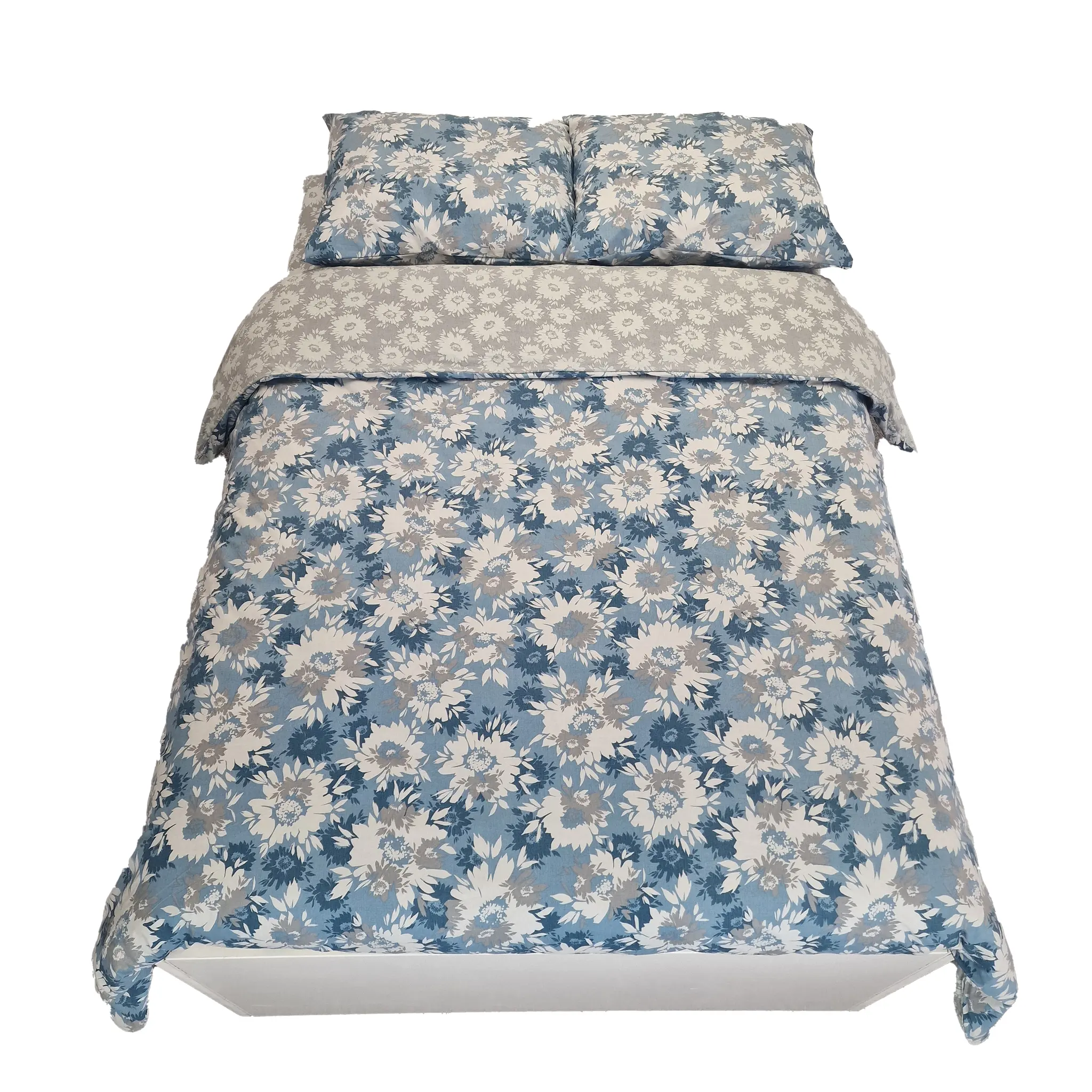 De bovenzijde bestaat bloemen in de kleuren lichtblauw, donkerblauw grijs en gebroken wit.