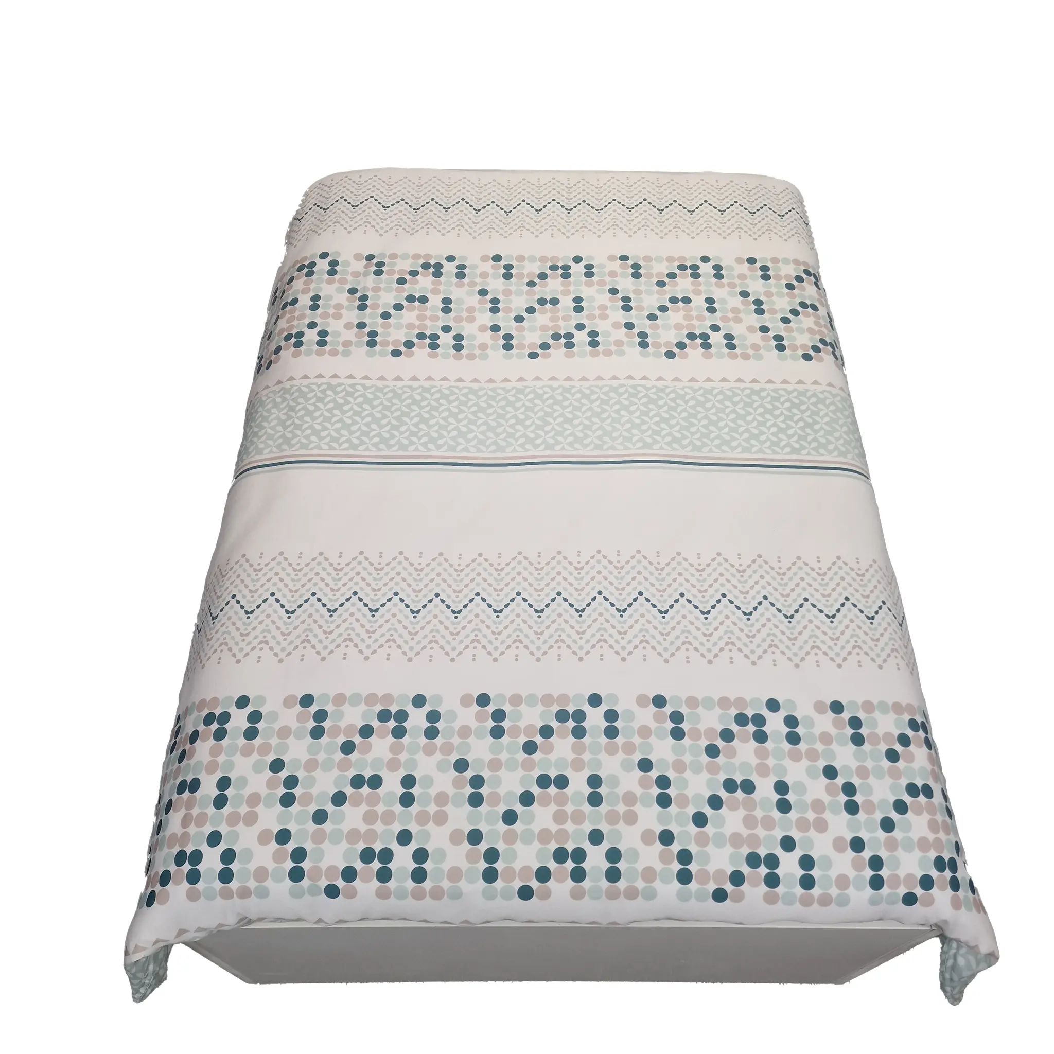 De kleur van de bovenkant van het dekbedovertrek is in de basis wit. Daarop zijn zijn in de kleuren mint, beige/bruin en groen, verschillende patronen geprint. Dit maakt dat het dekbed een levendige en frisse uitstraling heeft.
