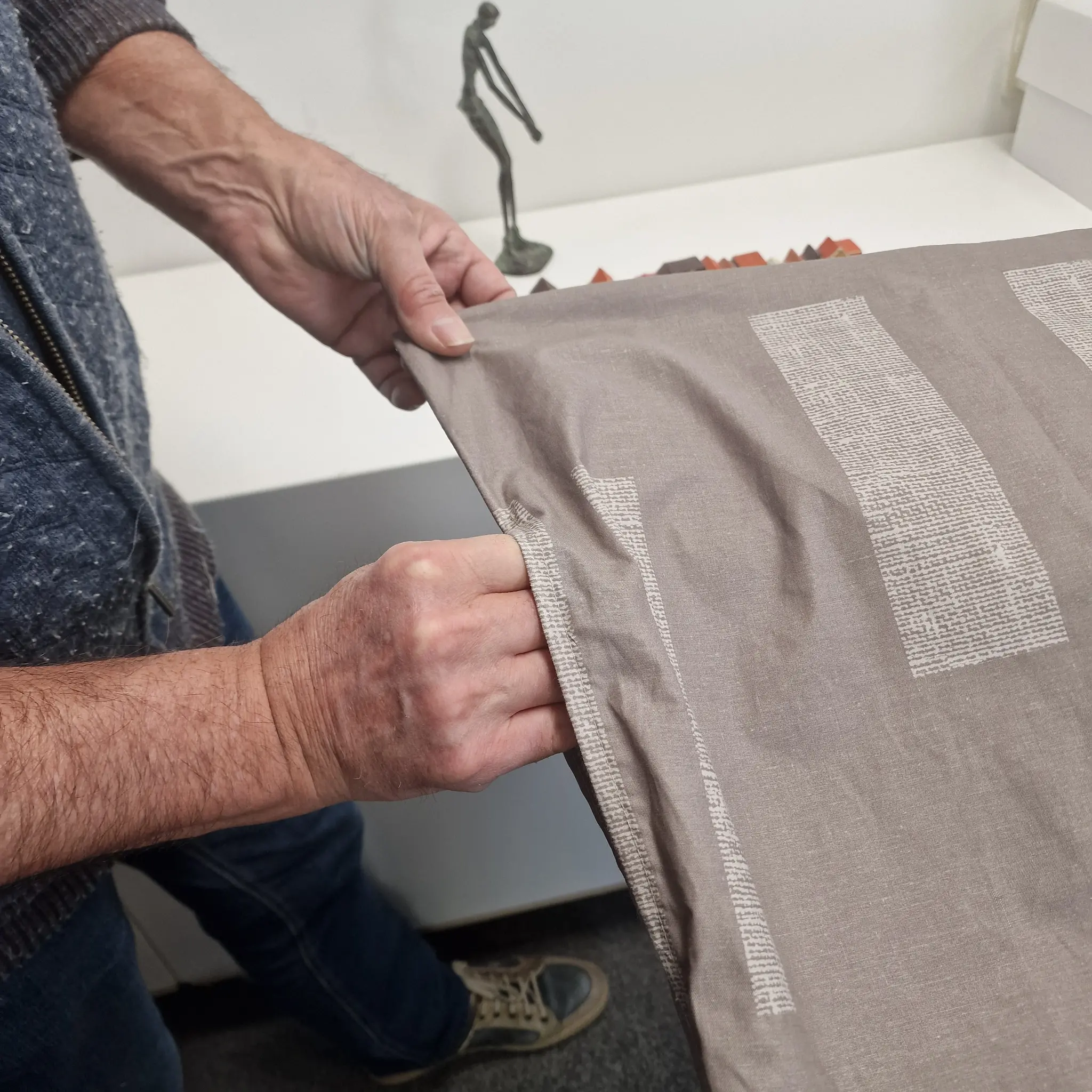 Het Sofiben dekbedovertrek Tetris is een modern overtrek Dit overtrek is in een Taupe kleur, met lichte blokken/strepen. Met in de lichte blokken strepen accenten van de Taupe kleur